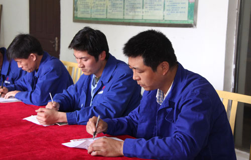 為加大員工培訓(xùn)力度,提升員工綜合素質(zhì),今年以來,大地公司創(chuàng)新培訓(xùn)形式,完善培訓(xùn)機(jī)制,本著“立足崗位,切合實(shí)際,因崗施教,注重實(shí)效”的原則,把培訓(xùn)任務(wù)分解到各車間,各崗位。建立培訓(xùn)、考核、晉級一體化的激勵機(jī)制,激發(fā)團(tuán)隊(duì)活力,形成人人學(xué)習(xí),個個上進(jìn)的良好氛圍。 各車間結(jié)合工作實(shí)際,嚴(yán)格遵循公司各階段培訓(xùn)活動規(guī)定的步驟和時間安排,列出學(xué)習(xí)計劃,明確學(xué)習(xí)任務(wù)和時間,針對不同崗位不同員工的需求,采取集中學(xué)習(xí)、個人自學(xué)、研討交流等方式,重點(diǎn)學(xué)習(xí)安全生產(chǎn)規(guī)章制度,崗位操作規(guī)程,業(yè)務(wù)流程等,通過理論知識測評,使職工找準(zhǔn)自身存在的問題和薄弱環(huán)節(jié),以便及時彌補(bǔ)和改進(jìn)。確保培訓(xùn)取得實(shí)實(shí)在在的效果。 通過培訓(xùn),滿足了廣大員工對知識、技能的需求,激發(fā)了員工的工作熱情和團(tuán)隊(duì)活力,公司上下形成了學(xué)技術(shù)、比技能、爭先進(jìn)的良好環(huán)境。 燒成車間正在對班組進(jìn)行理論知識測試