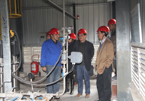 在中控二樓接待室,檢查組一行聽取了集團副總裁李保錄關于干法水泥生產線脫硝技改項目的情況介紹。隨后,檢查組一行來到1#生產線窯尾脫硝車間,現場查看工程的建設情況,了解脫硝原理及工藝流程,并詳細詢問了脫硝工程投運情況及運行的效果。他們對我公司脫硝設施建設完成情況給予充分肯定,同時要求,要按照市政府有關通知要求,盡快完成項目驗收,使脫硝系統正式投入運行,為地方節能減排做出積極貢獻